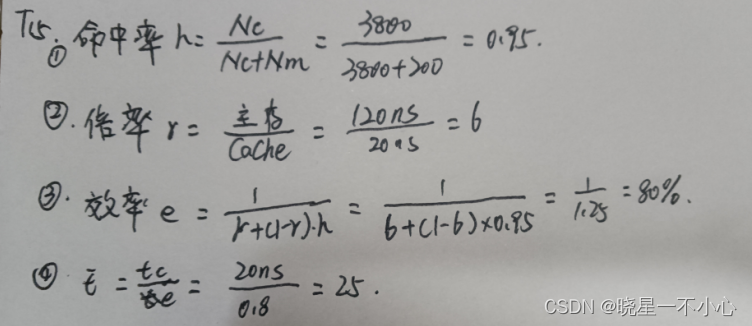 15. (填空题, 4分)CPU执行一段程序时,cache完成存取的次数为3800次,主存完成存取的次数为200次。Cache的命中率为____,已知cache存取周期为20ns,主存为120ns,主存慢于cache的倍率为____,cache/主存系统的效率为____%,平均访问时间为____ns。