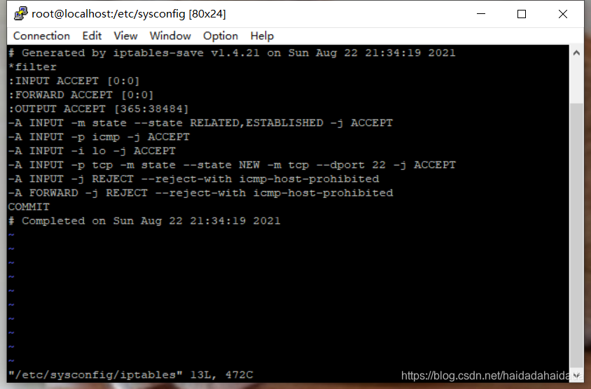 17、通过 vi /etc/sysconfig/iptables 命令编辑防火墙规则,添加端口