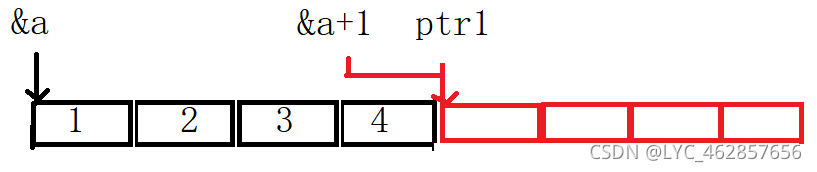 - ptr1是一个整形指针,指向的是数组后面空间的地址,&a取出的是数组的地址
