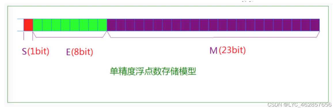 - 最高的1位是符号位s,接着的8位是指数E,剩下的23位为有效数字M