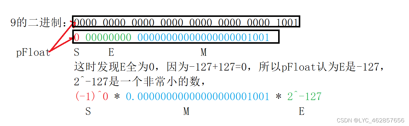 - 说明存的时候E加上了127,但还是为0,说明这个2 ^ E特别小