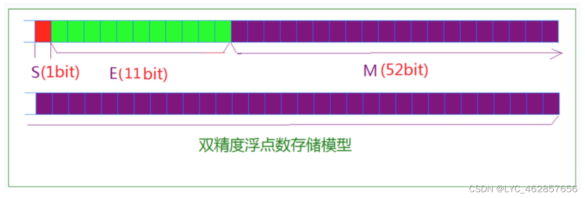 - 最高的1位是符号位S,接着的11位是指数E,剩下的52位为有效数字M