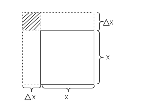 变化的面积大小是△s=(x+△x)²- x²=2x△x+(△x)²